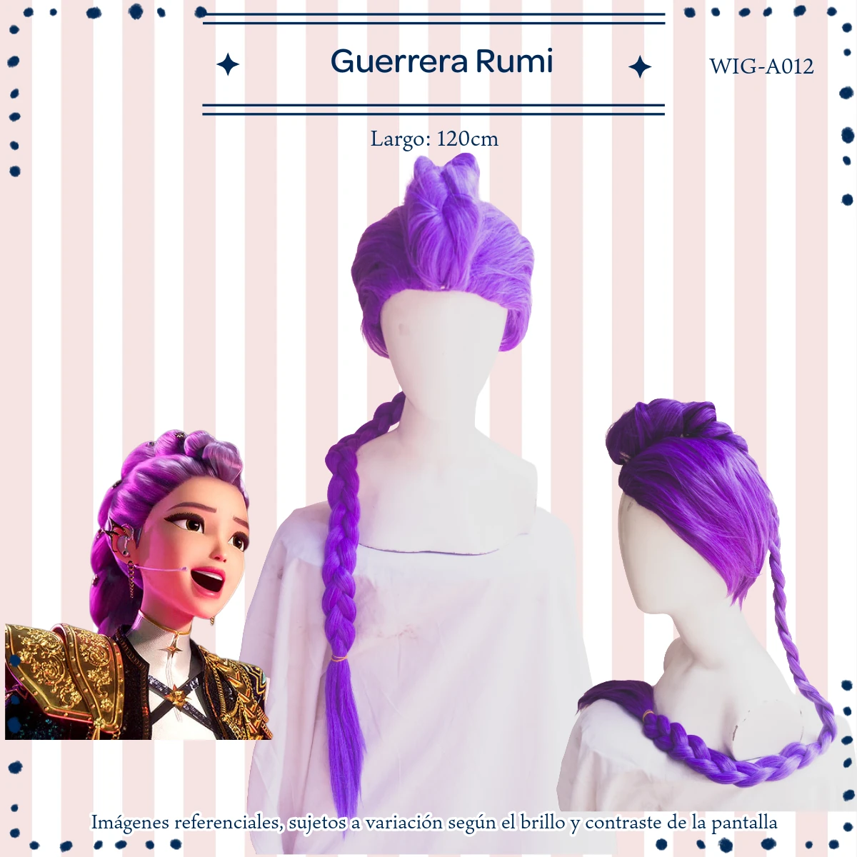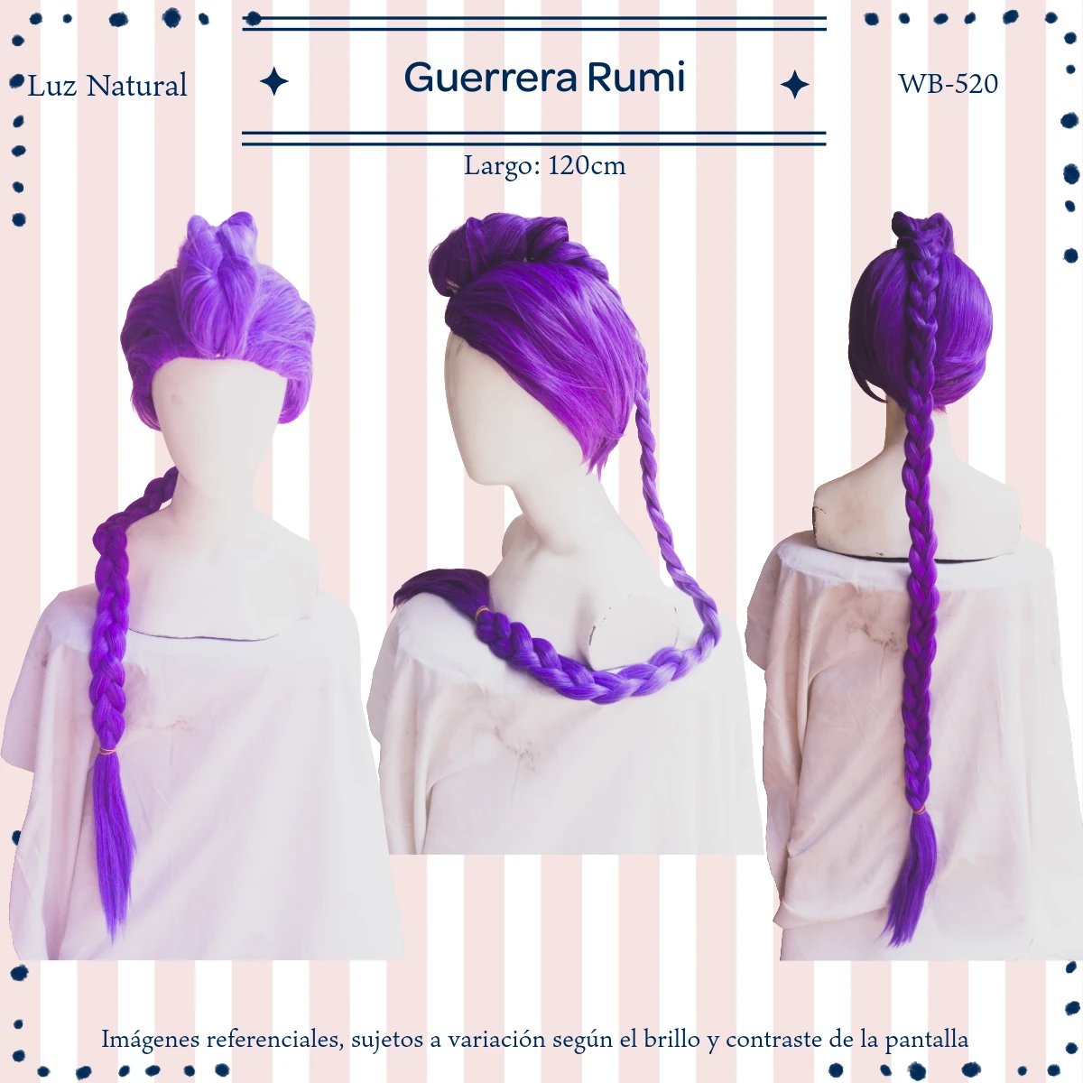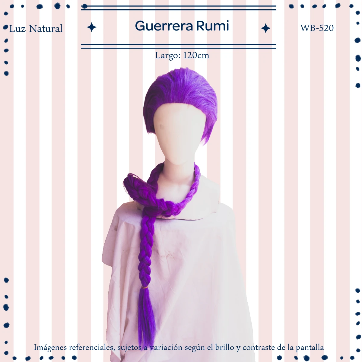Peluca Rumi Morado Larga de material sintético seminatural de alta calidad Envio / Recojo: Producto disponible, previa coordinación Color: Lila Tamaño: Larga Código: WIG-A012 Material: Seminatural Fibra Kanekalon Costura: Rose