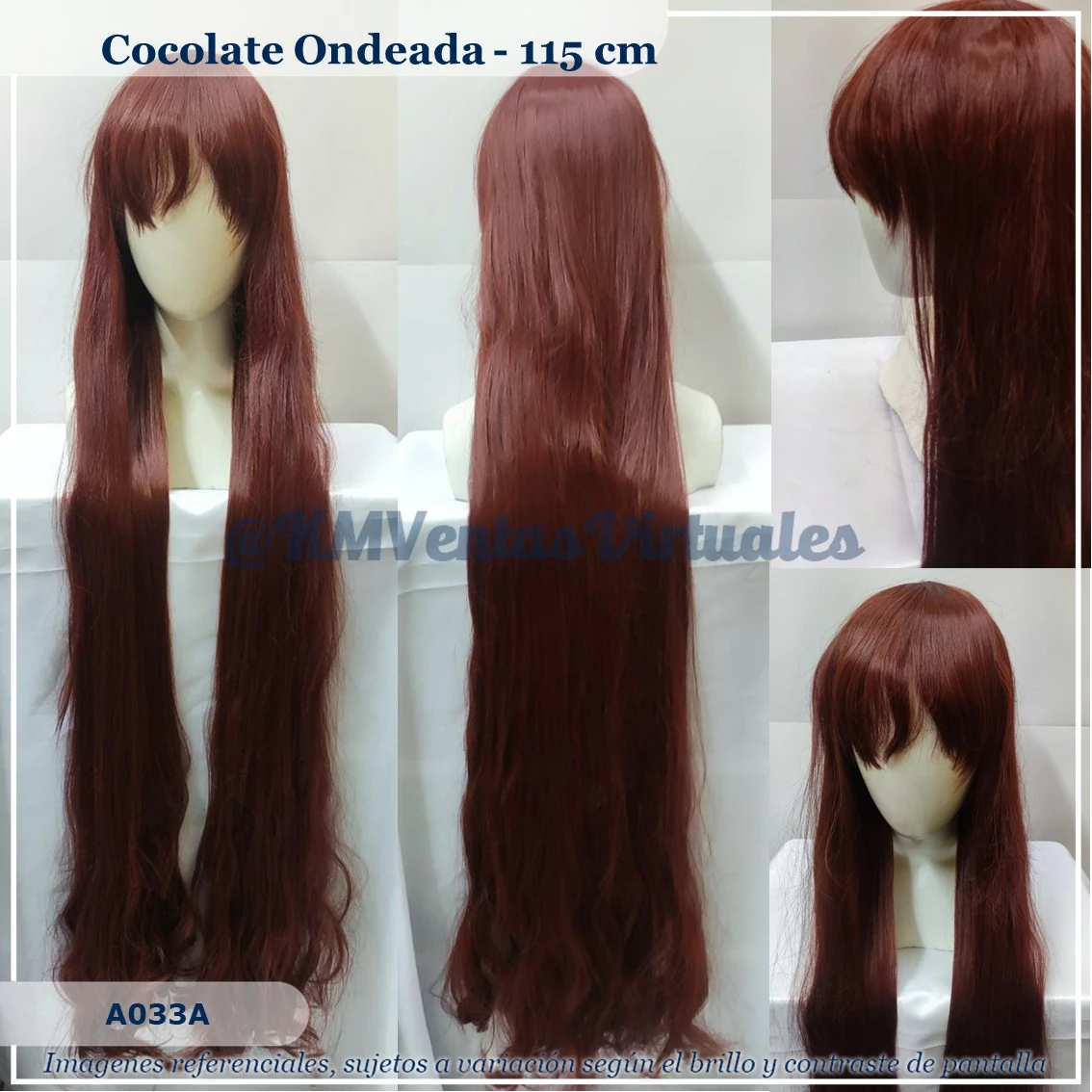 Peluca Marrón Larga de material sintético seminatural de alta calidad Envio / Recojo: Producto disponible, previa coordinación Color: Marrón- chocolate Tamaño: Larga Código: WIG-A033A Material: Seminatural Fibra Kanekalon Costura: Rose