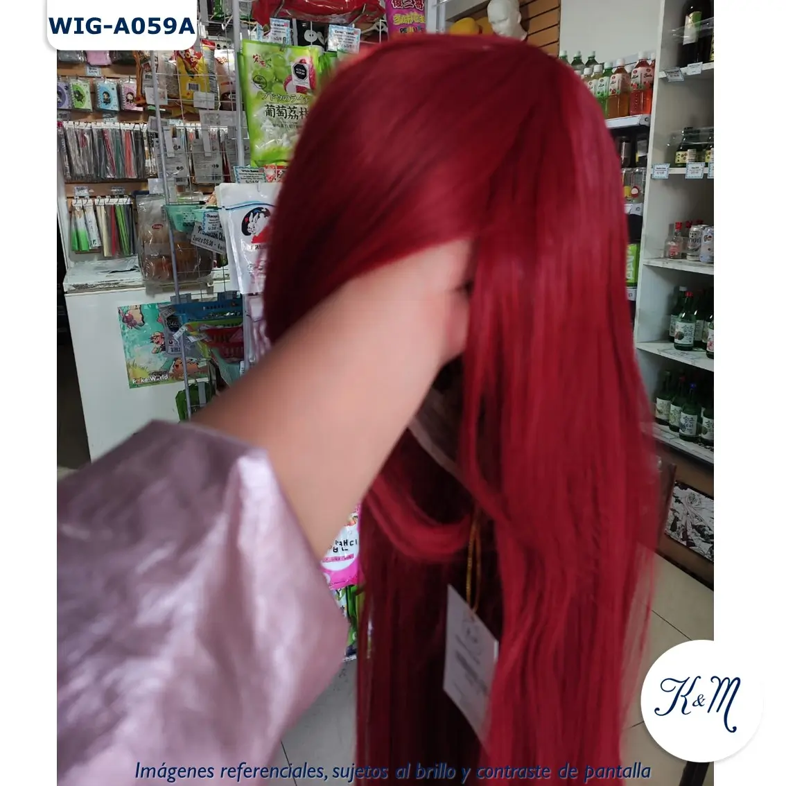 Peluca Rojo Larga de material sintético seminatural de alta calidad Envio / Recojo: Producto disponible, previa coordinación Color: Rojo vino Tamaño: Larga Código: WB-100CM-RED Material: Costura: Rose