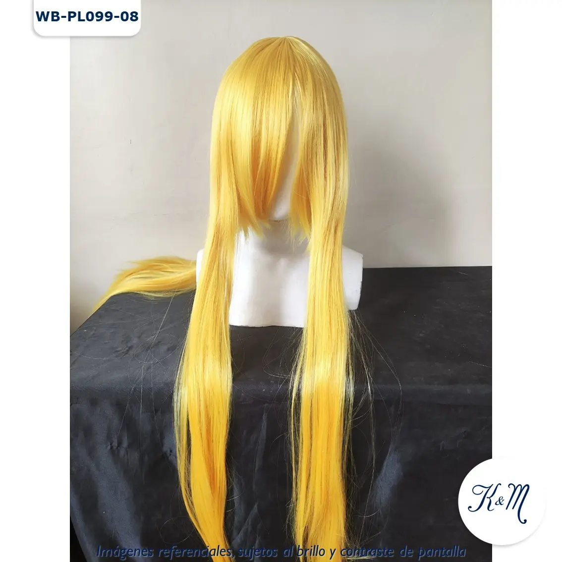 Peluca Amarillo Larga de material sintético seminatural de alta calidad Envio / Recojo: Producto disponible, previa coordinación Color: Amarillo intenso Tamaño: Larga Código: WB-PL099-08 Material: Seminatural Fibra Resistente al Calor Costura: Rose