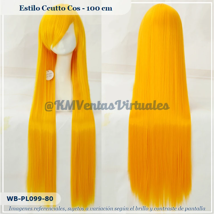 Peluca Amarillo Larga de material sintético seminatural de alta calidad Envio / Recojo: Producto disponible, previa coordinación Color: Dorado Tamaño: Larga Código: WB-PL099-80 Material: Seminatural Fibra Resistente al Calor Costura: Rose