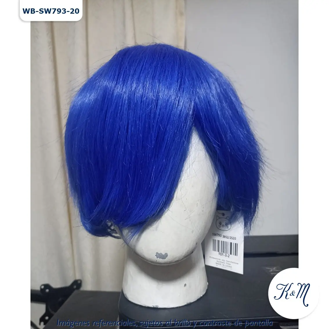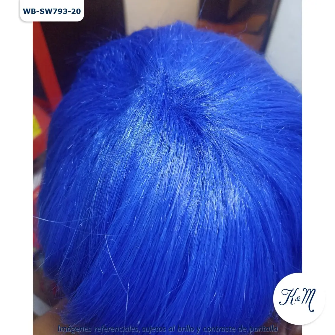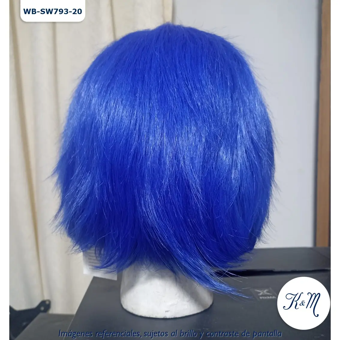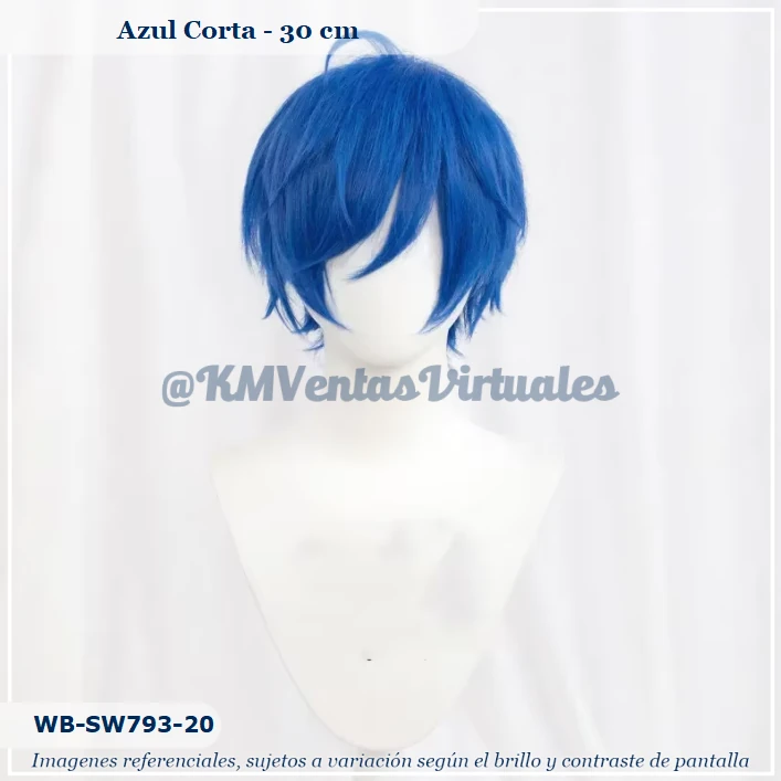 Peluca Azul Corta de material sintético seminatural de alta calidad Envio / Recojo: Producto disponible, previa coordinación Color: Azul Tamaño: Corta Código: WB-SW793-20 Material: Seminatural Fibra Kanekalon Costura: Rose