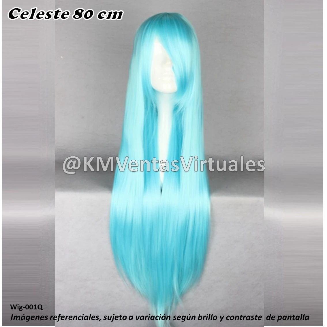 Peluca Aqua Celeste Larga de material sintético seminatural de alta calidad Envio / Recojo: Producto disponible, previa coordinación Color: Celeste Tamaño: Larga Código: WIG-001Q Material: Seminatural Fibra Kanekalon Costura: Rose