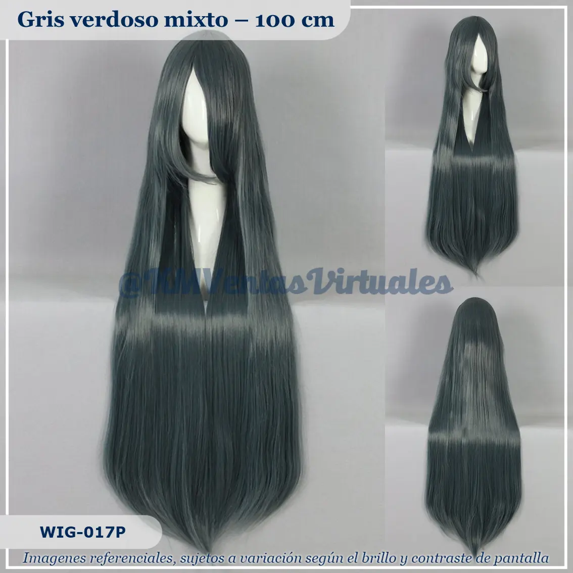 Peluca Verde Larga de material sintético seminatural de alta calidad Envio / Recojo: Producto disponible, previa coordinación Color: Gris verdoso Tamaño: Larga Código: WIG-017P Material: Seminatural Fibra Kanekalon Costura: Rose