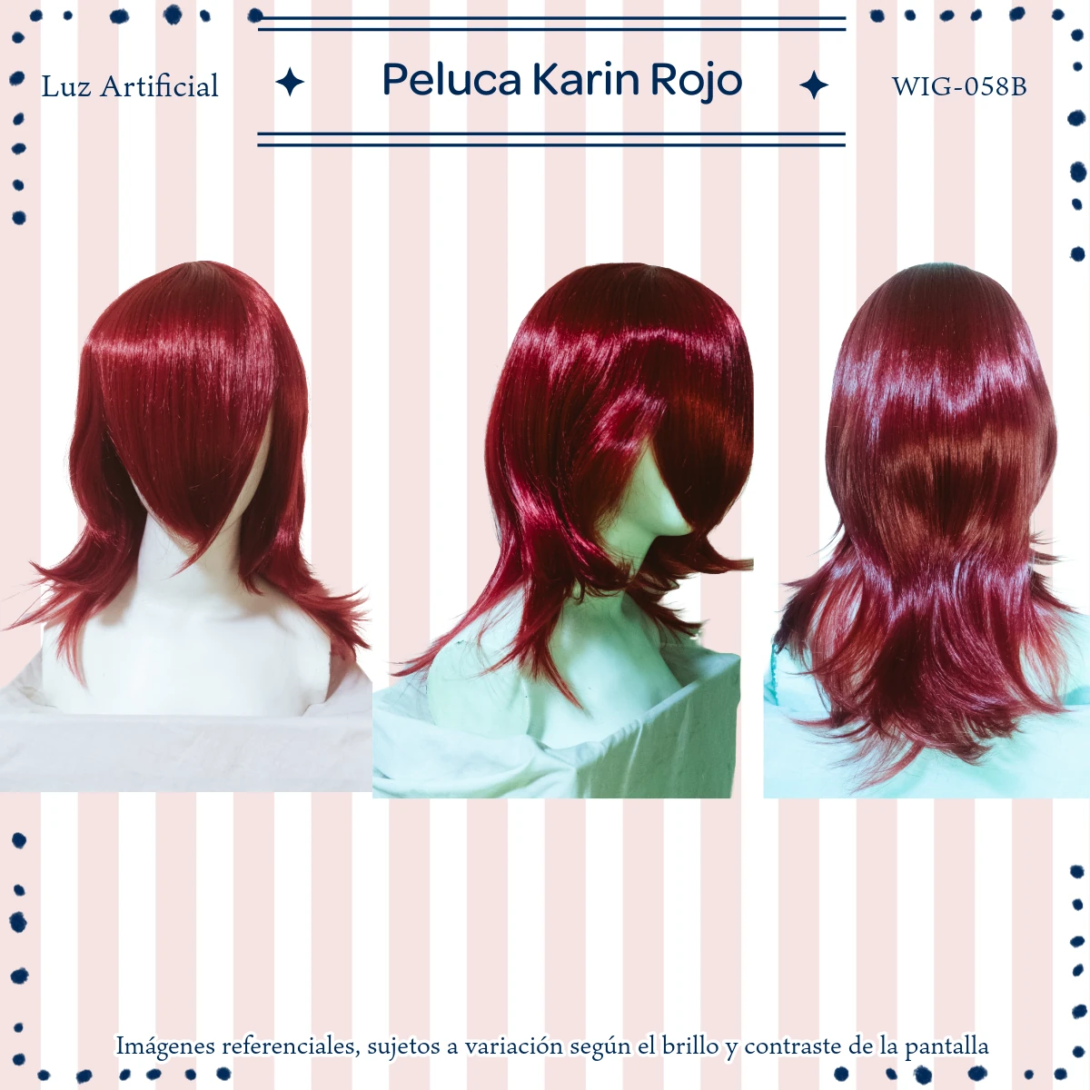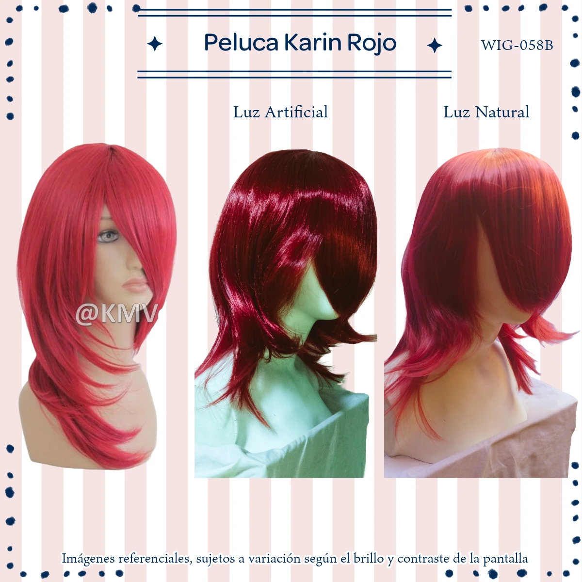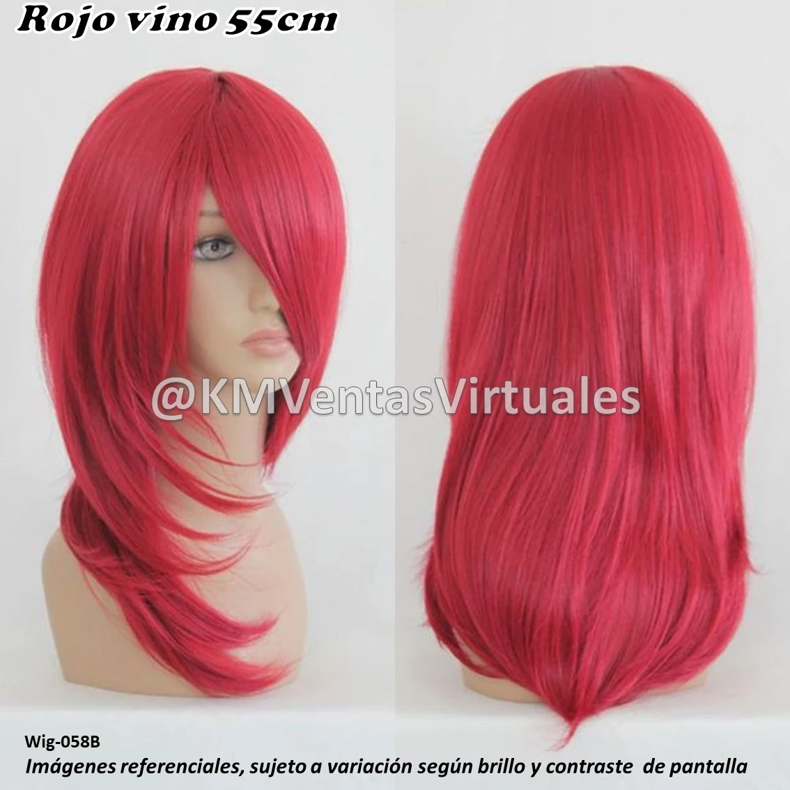 Peluca Karin Rojo Mediana de material sintético seminatural de alta calidad Envio / Recojo: Producto disponible, previa coordinación Color: Rojo vino Tamaño: Mediana Código: WIG-058B Material: Seminatural Fibra Kanekalon Costura: Rose